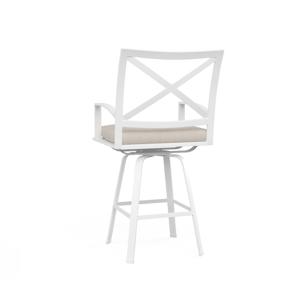 The Bristol Bar Stool is rendered in high quality, low-maintenance aluminum that will stand the test of time. This stool features a gently curved X back and seat scaled for comfort, with swivel base and subtly curved arms. Pairs with the Bristol Pub Table.