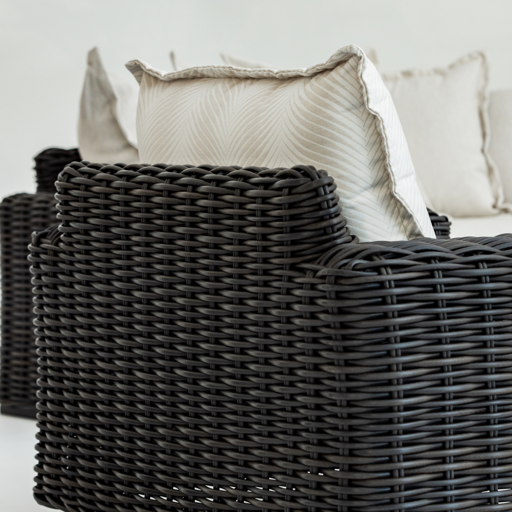Sunset West’s Cabo Oversized Club Chair features deep seating with a generously oversized frame and track arm. It's plush pillow cushions provide sumptuous comfort to sink into. Cabo is wrapped in Resin Wicker with a Kahlua finish to bring a tropical feel to any space.
