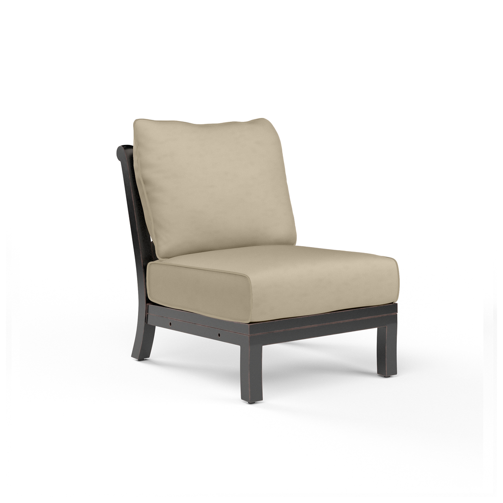 The Monterey Armless Club incorporates organic lines with a stately frame for a handsome statement outdoors. Monterey is constructed in long-lasting aluminum, with an Espresso powder coat and Old World Copper Rub, for a beautiful look and finish that will stand the test of time with minimal maintenance.