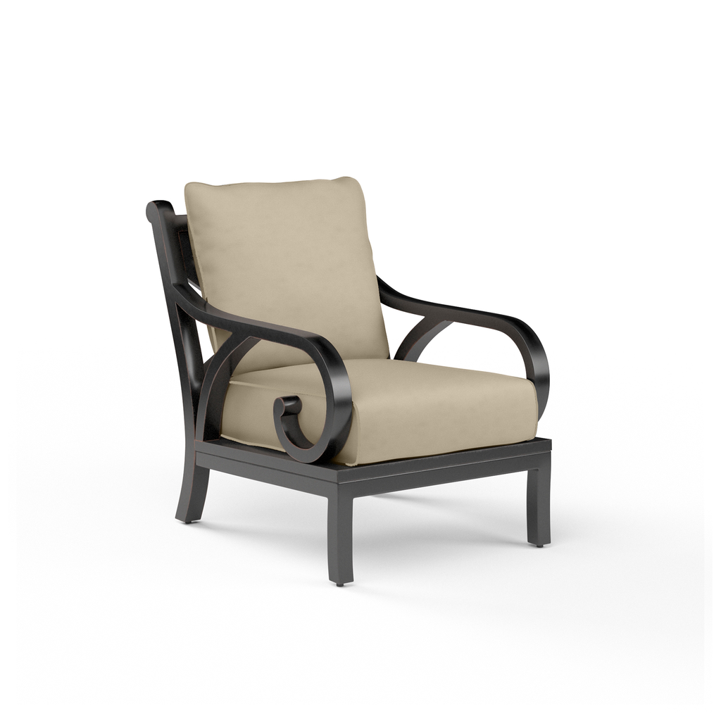 The Monterey Club Chair incorporates organic lines with a stately frame for a handsome statement outdoors. Monterey is constructed in long-lasting aluminum, with an Espresso powder coat and Old World Copper Rub, for a beautiful look and finish that will stand the test of time with minimal maintenance.