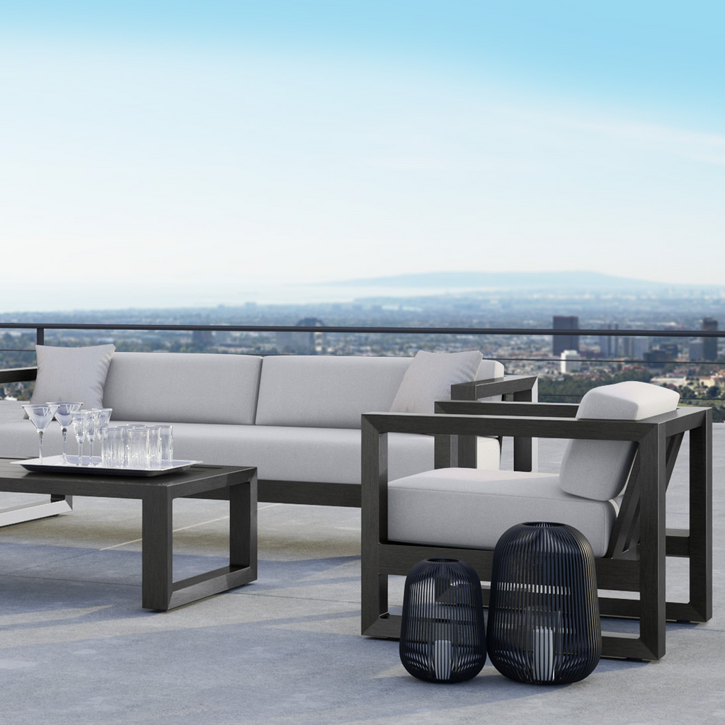 The Redondo Club Chair blends modern and industrial sensibility into one striking design. Informed by mid-century design elements, the Redondo features a low back and smart, linear frame. Crafted in powder coated aluminum in a hand-brushed Slate finish.