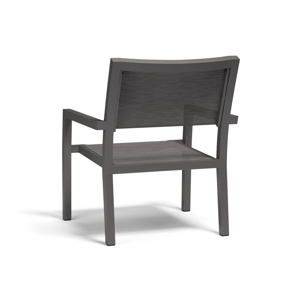 The Vegas Collection offers ease of outdoor dining and entertainment with its low maintenance sling and aluminum frame. The Vegas Club Chair is crafted with colorfast textilene, matte graphite finish and open, stackable design.