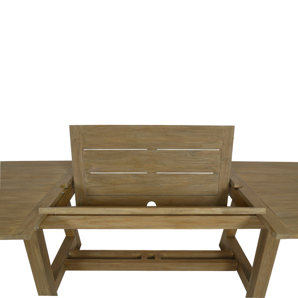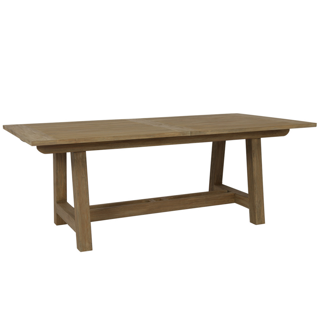 Sunset West's Coastal Teak Extension Table is a beautifully contemporary take on classic teak furnishings. One of our most popular styles, this extension table features a hidden butterfly leaf for instantly extended dining. Our unique multi-step finish gives the natural wood a warm grey color, complementing our other collections for the perfectly curated coastal design.