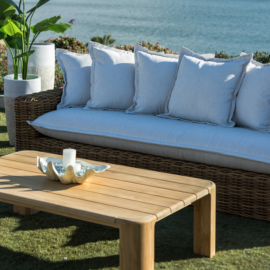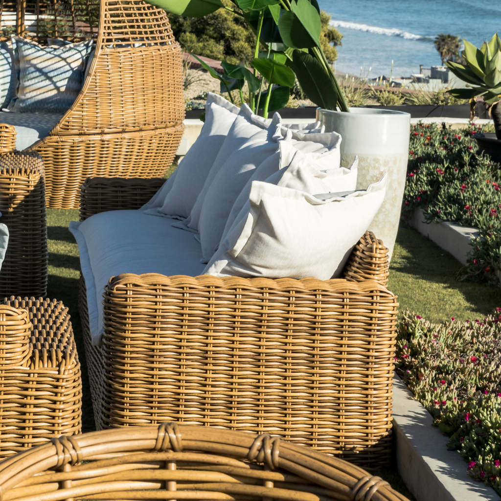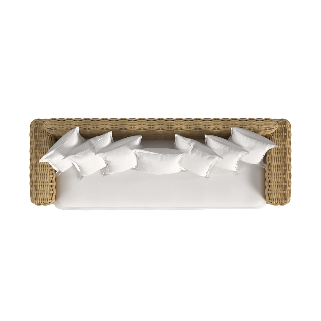 Sunset West's Playa Large Sofa features deep seating with an oversized frame and track arm for sumptuous comfort. Sink into its plush pillow cushions for luxurious relaxation. Crafted with Resin wicker in a Natural finish, bring a tropical feel to any outdoor space.