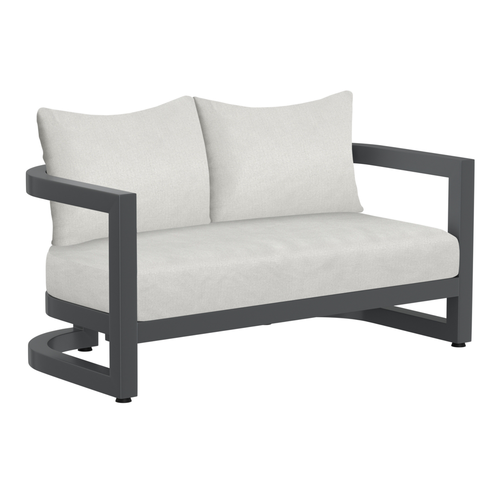 A Deco meets contemporary with Sunset West’s Malibu Collection. Featuring a structural design with modern proportions, the Malibu Loveseat includes a split-back frame and curved tuxedo arm. Tailored cushions mimic the sleek frame design and provide supreme comfort.