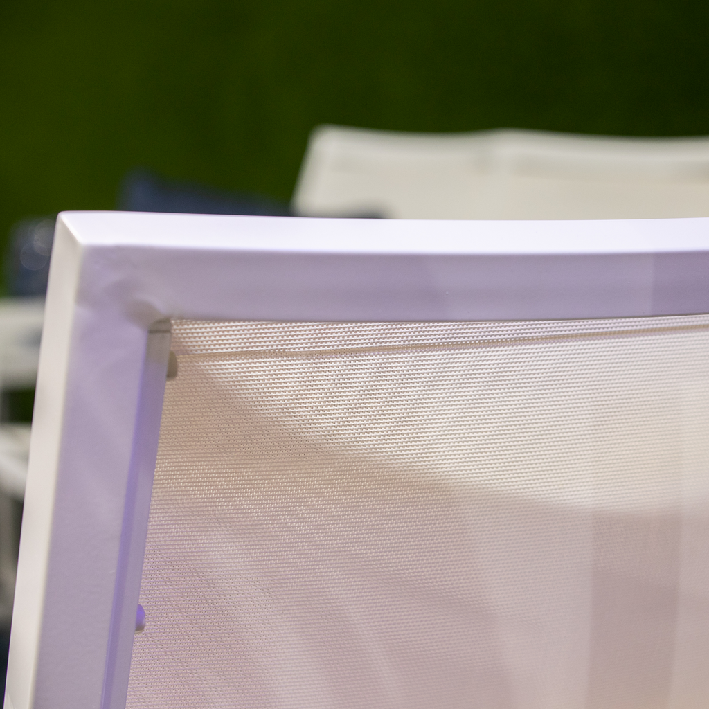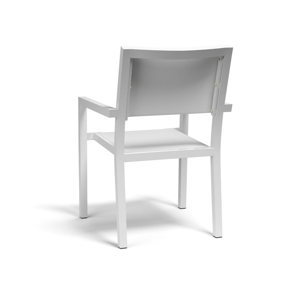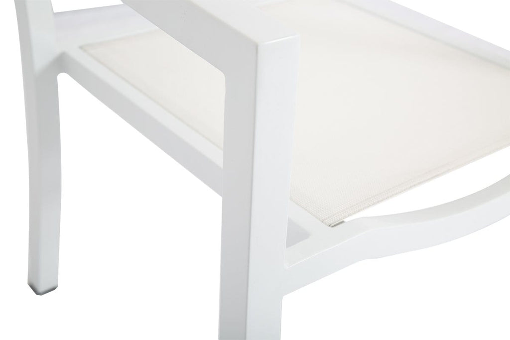 A modern-day solution to simple outdoor entertaining, the Naples offers low maintenance with sling seating and enduring powder coated aluminum. The Naples Dining Chair is crafted with colorfast textilene, satin white finish and open, stackable design.