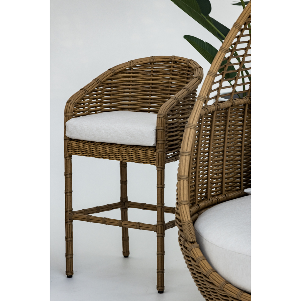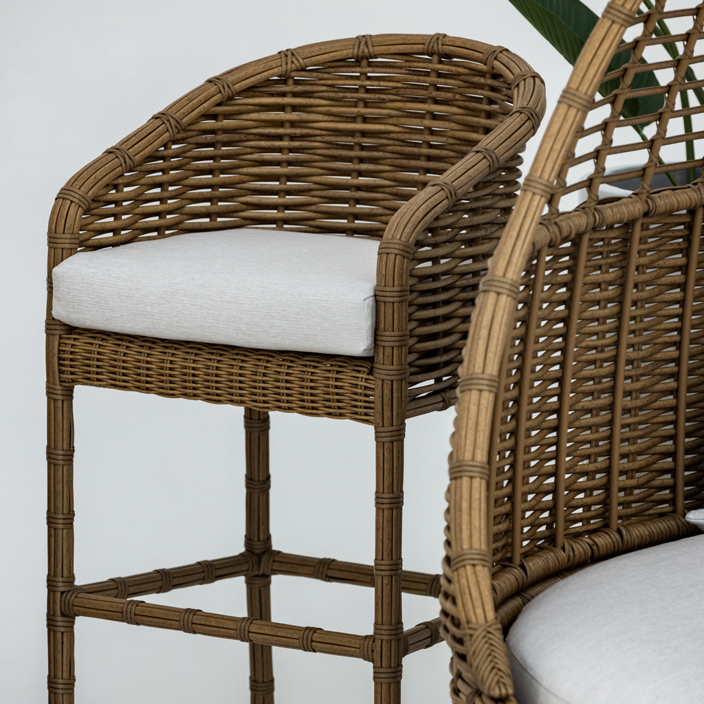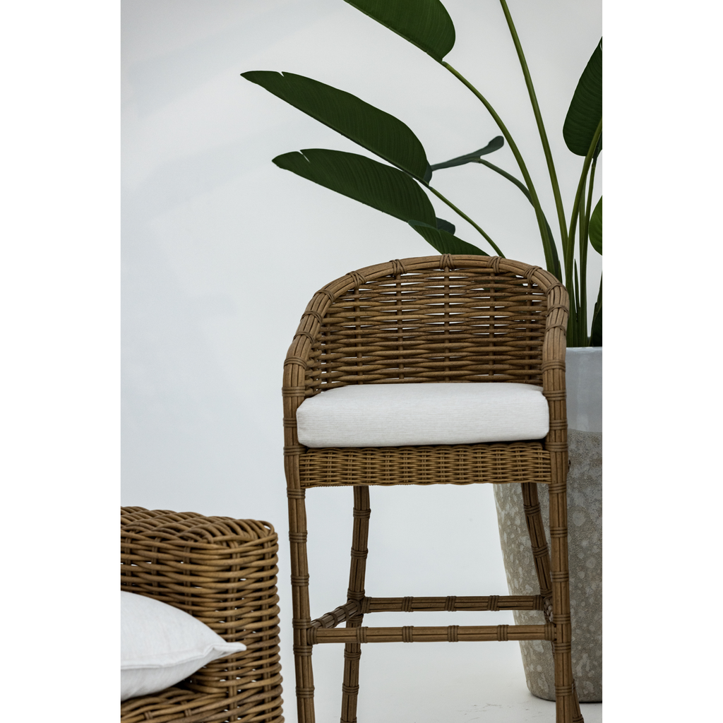 The Playa Barstool is crafted with a generously oversized frame and plush pillow cushions for sumptuous comfort. Playa is wrapped in Resin Wicker with a Natural finish bringing a tropical feel to any space.