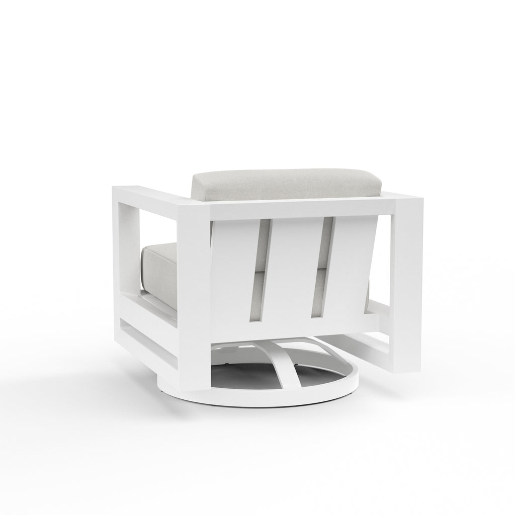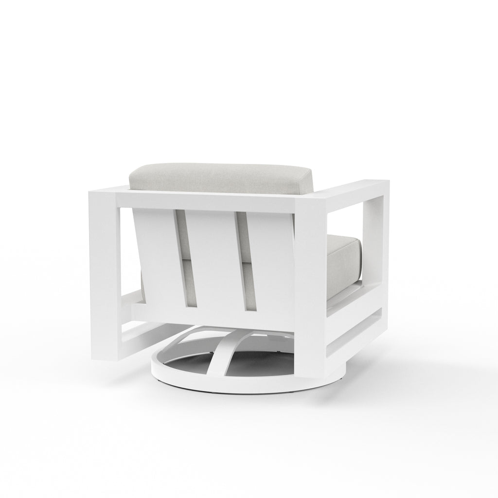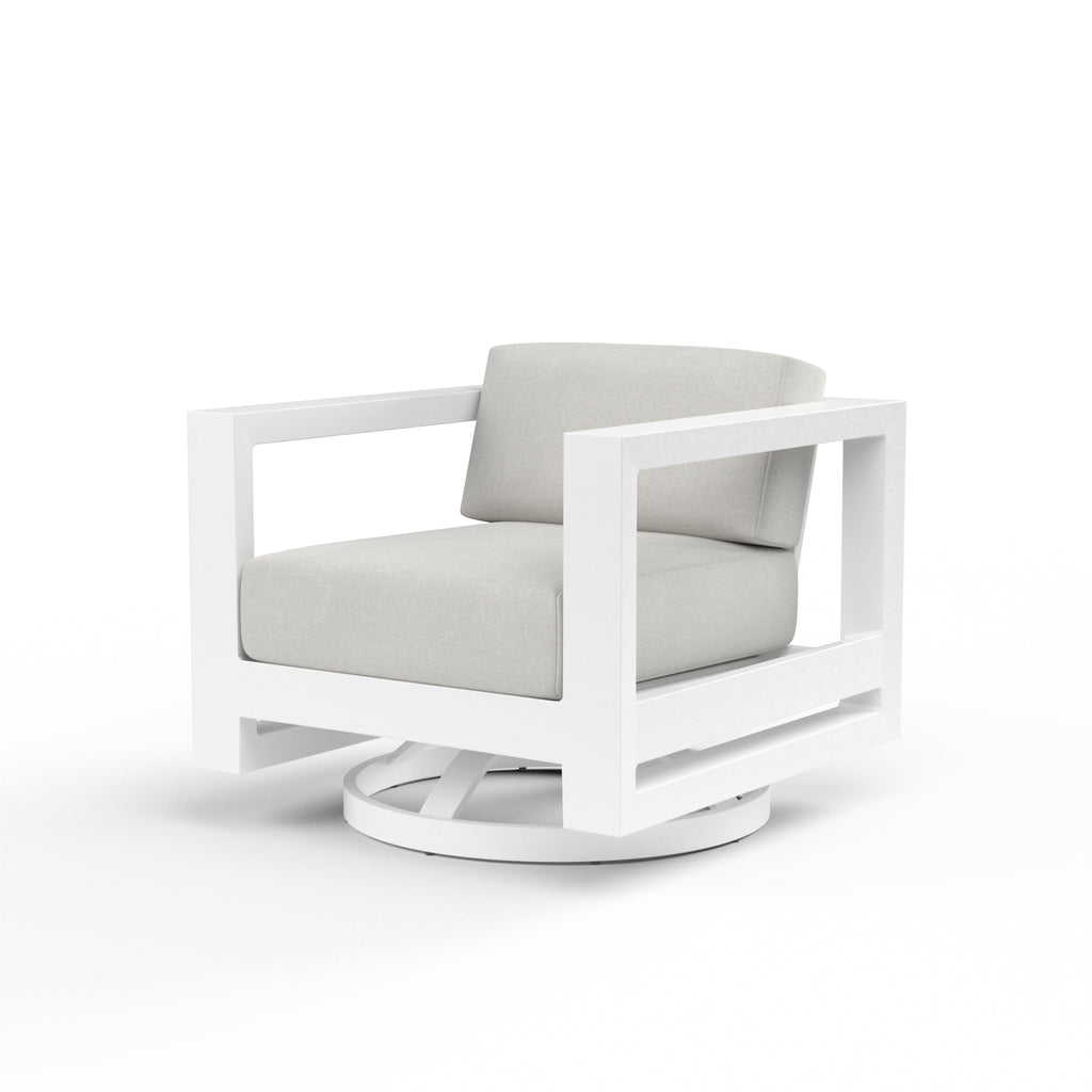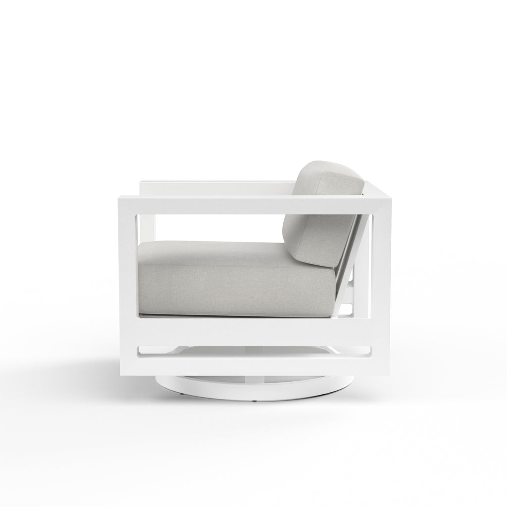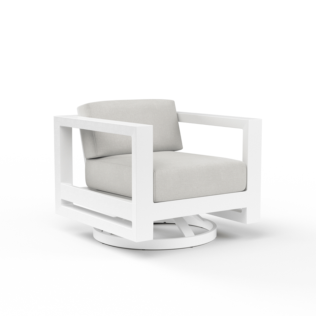 The Newport Swivel Club Chair introduces smooth motion to one of our most popular silhouettes. Informed by mid-century design elements, the Newport features a low back and smart, linear frame. Crafted in powder coated aluminum in a Satin white finish.