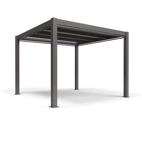 Find shelter from the sun with our fully welded, powder-coated aluminum pergola shade structure. Available in a graphite or white finish. Includes textilene shade, wire management ready frame, and curtain rods. Commercial grade. Assembly required.