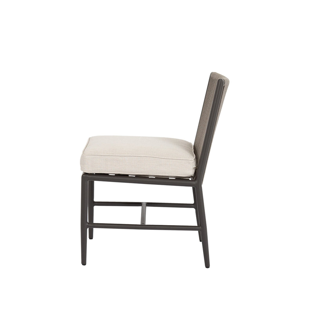 Informed by mid-century design, Pietra Dining Chair incorporates the best of classic proportions with modern materials. Inspired by the subtle tones of natural stone, this piece is rendered in a matte Graphite aluminum with vary-colored Shale all-weather rope. It features a rounded tube frame and mid-rise back, that is perfectly scaled for smaller spaces and casts a compelling profile.