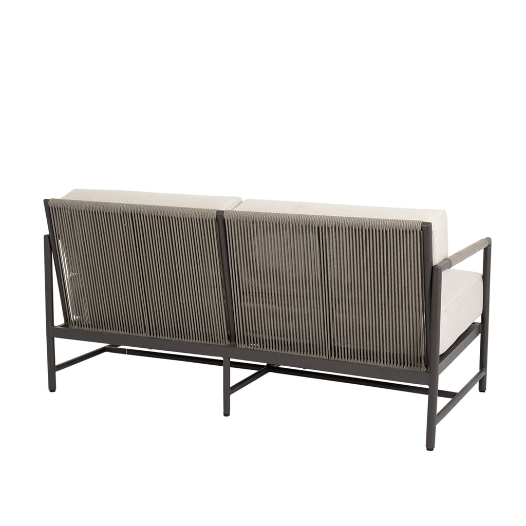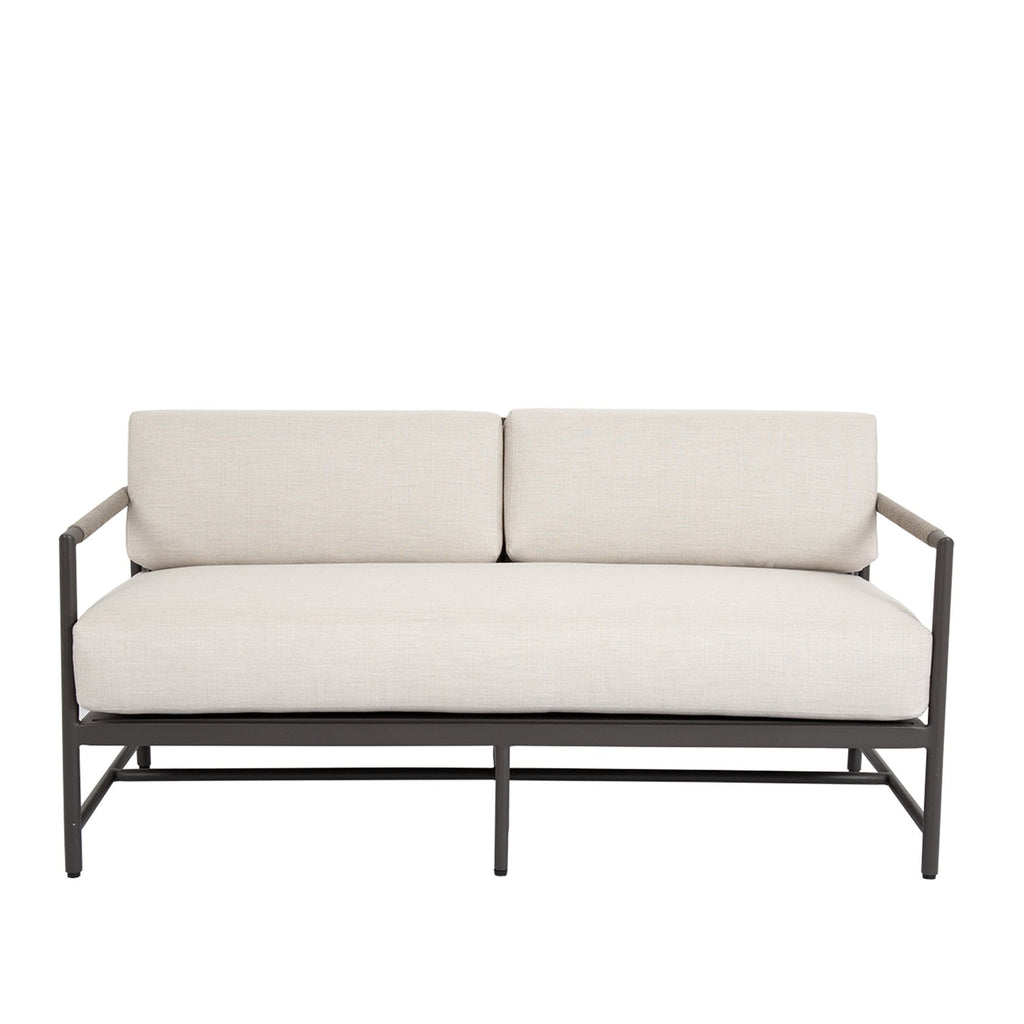 Informed by mid-century design, the Pietra Loveseat incorporates the best of classic proportions with modern materials. Inspired by the subtle tones of natural stone, this piece is rendered in a matte Graphite aluminum with vary-colored Shale all-weather rope. It features a rounded tube frame and mid-rise back, that is perfectly scaled for smaller spaces and casts a compelling profile.
