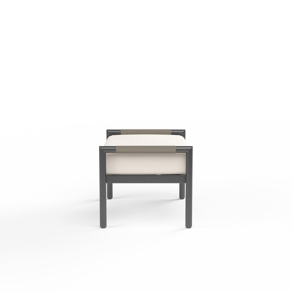 Informed by mid-century design, Pietra incorporates the best of classic proportions with modern materials. Inspired by the subtle tones of natural stone, this ottoman is rendered in a matte Graphite aluminum with vary-colored Shale all-weather rope. It features a rounded tube frame and plush 6" cushion that is perfectly scaled for smaller spaces and casts a compelling profile.
