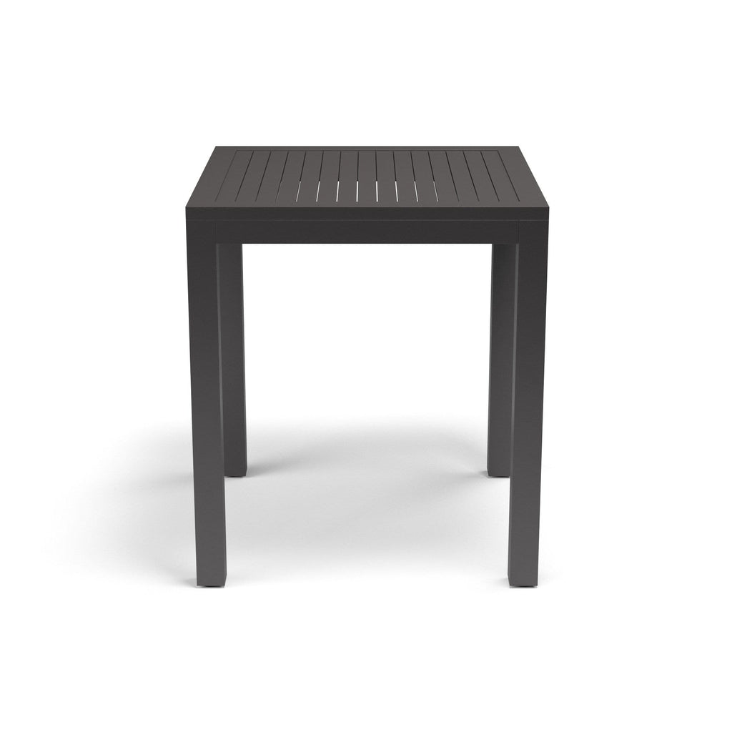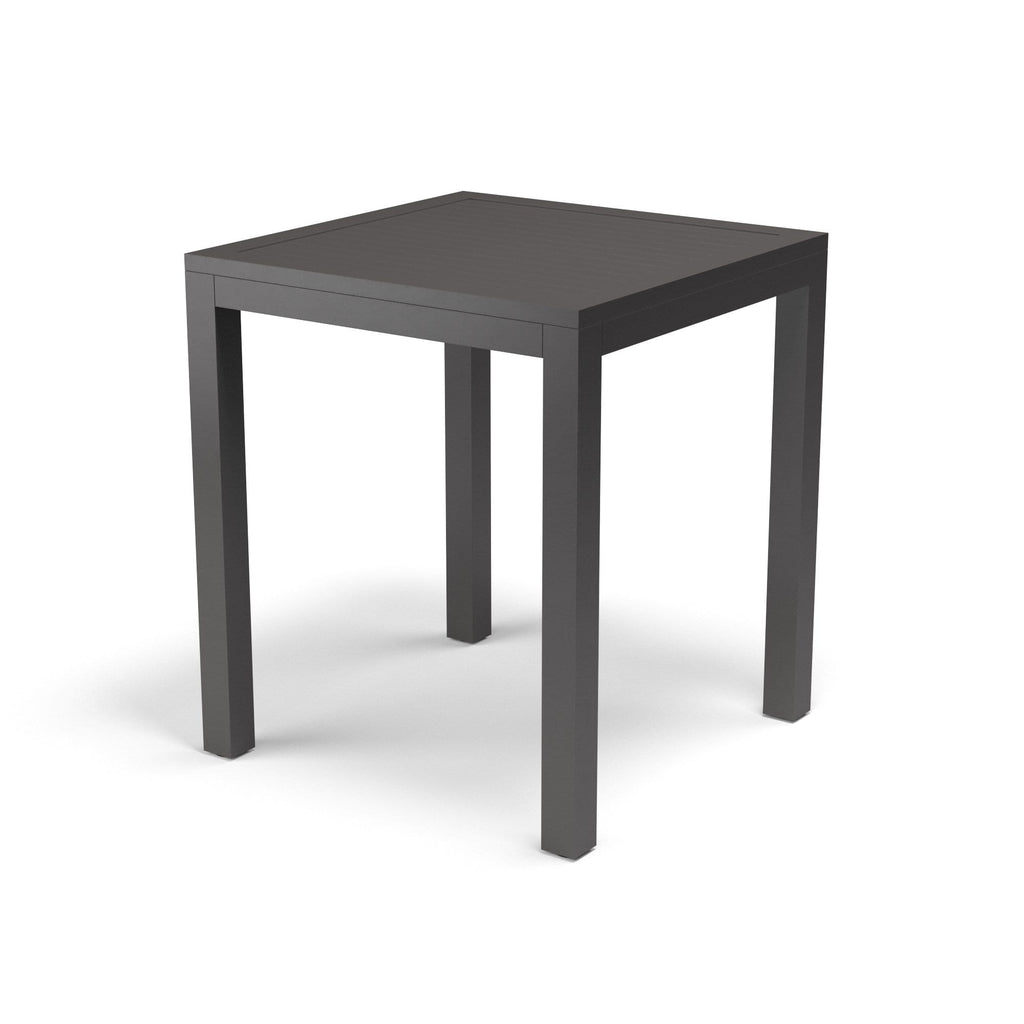 The Vegas Collection offers ease of outdoor dining and entertainment with its low maintenance sling and aluminum frame. The Vegas Pub Table is crafted in a scratch resistant Graphite finish, on a powder-coated aluminum frame and features a slatted table top and umbrella hole.