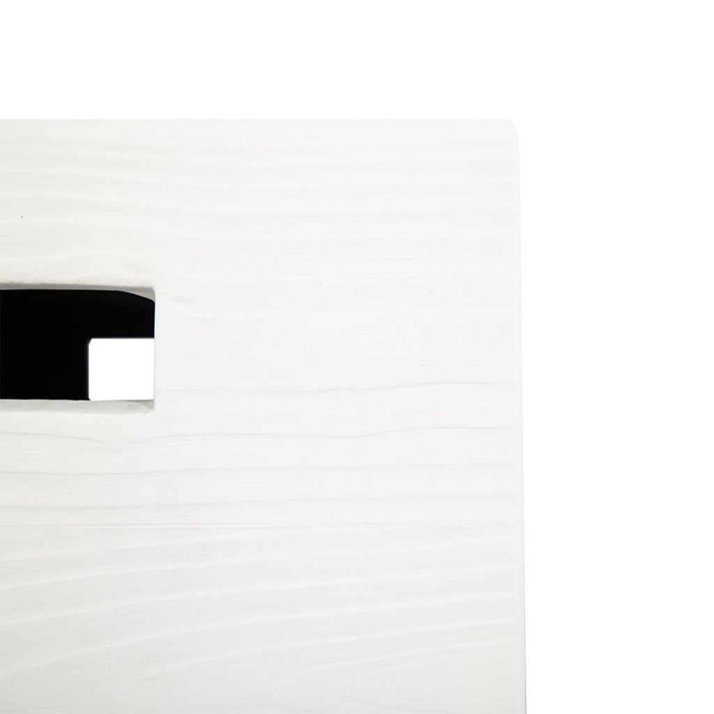 Featuring a natural wood grain texture, this coffee table mimics natural materials with a reinforced fiber concrete that will withstand the elements. Finished in bone, this piece is stunning indoors or out. Pairs well with the Faux Bois Coffee Table.