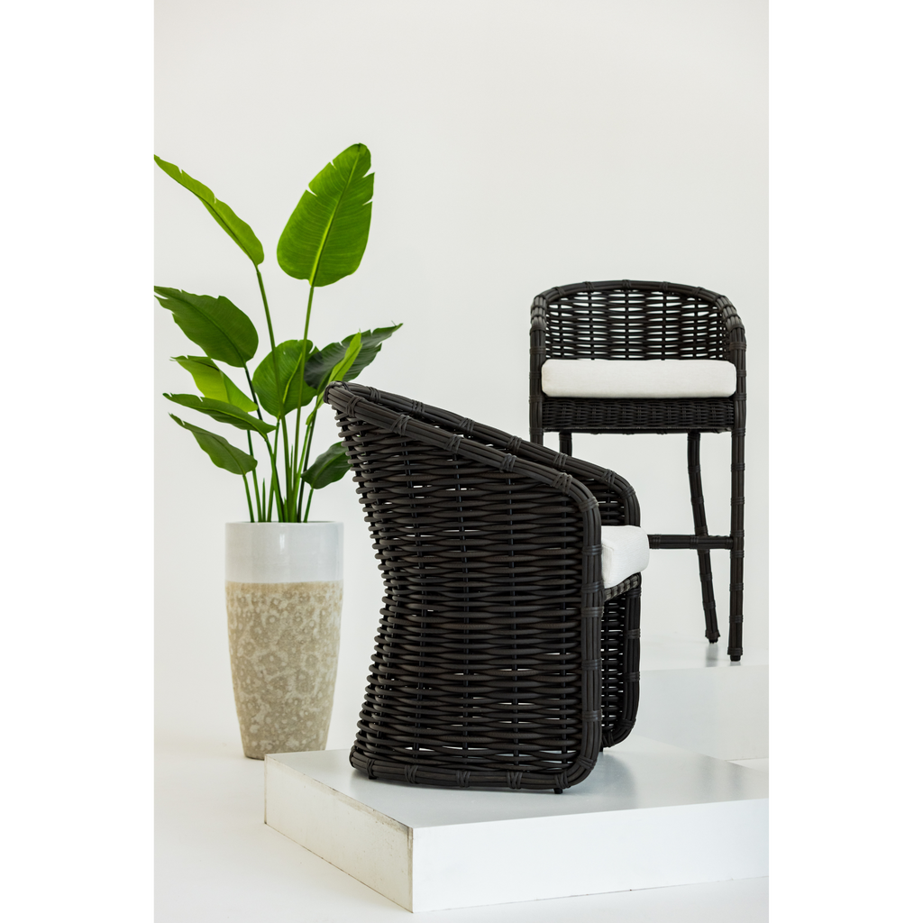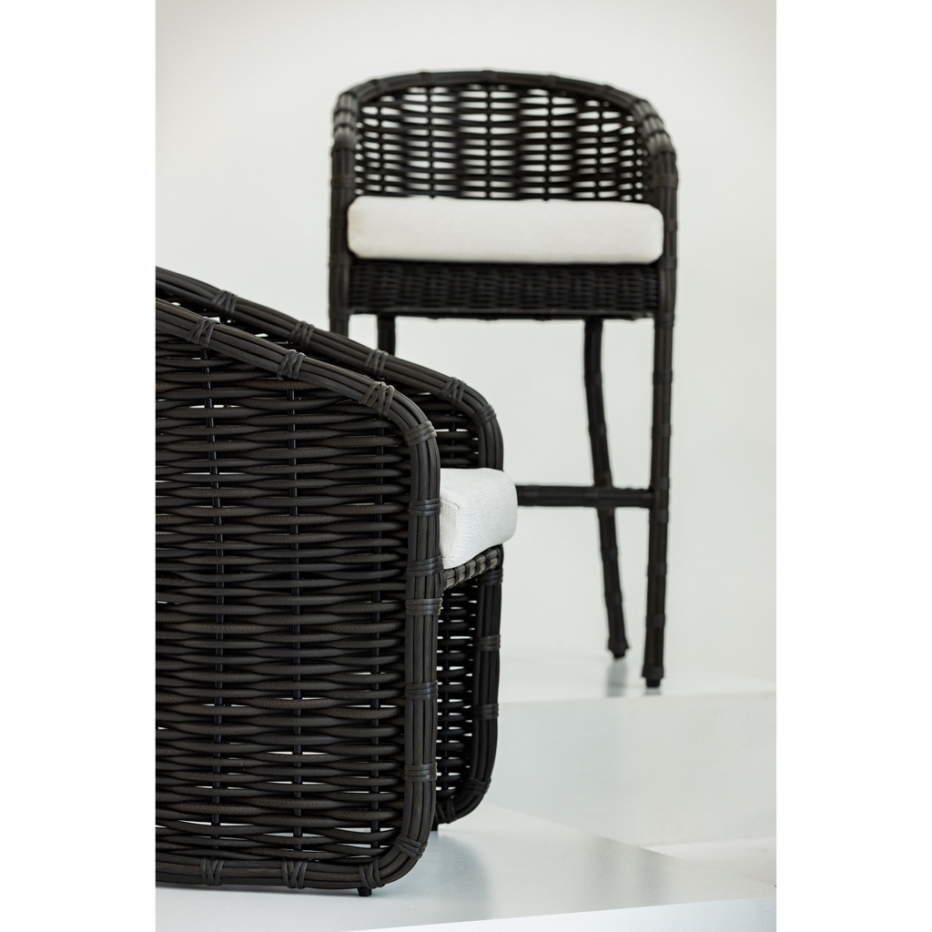 The Cabo Counterstool is crafted with a generously oversized frame and plush pillow cushions for sumptuous comfort. Cabo is wrapped in Resin Wicker with a Kahlua finish bringing a tropical feel to any space.